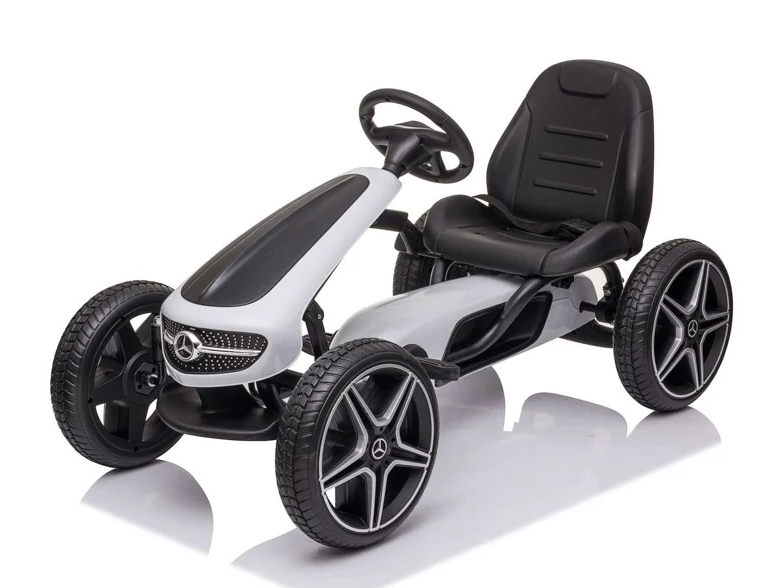 This Mercedes-Benz go-kart will keep your child active and fit. This beautiful go-kart is manufactured under license from Mercedes-Benz. With this fantastic children’s go-kart, your child will enjoy years of adventurous rides. Besides its ergonomic design, the Mercedes go-kart has a sporty look. The Mercedes logo and grille complete the look.