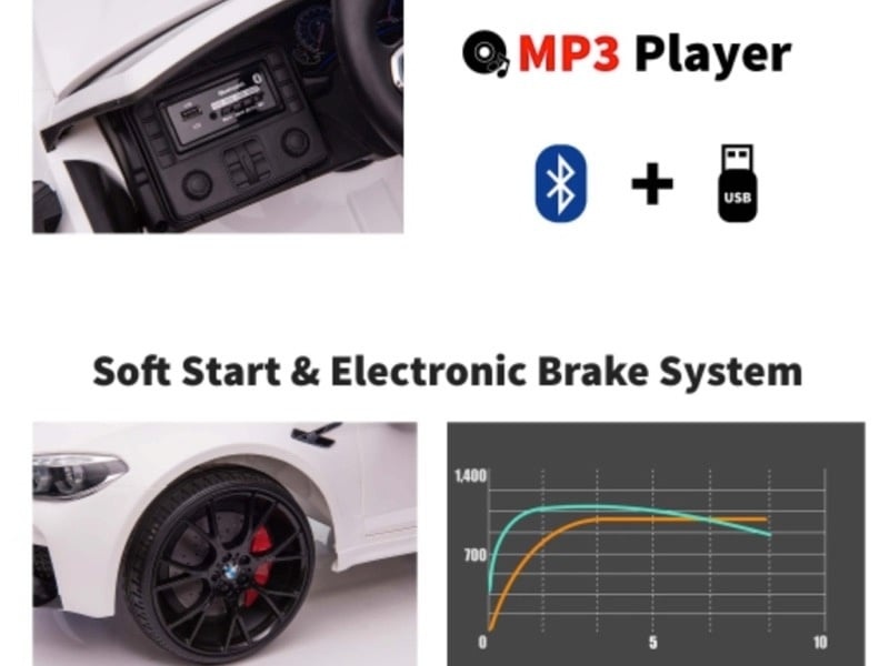 The BMW M5 battery children’s car is equipped with 2 24Volt drives on both rear wheels and has adjustable speeds between 2 and 7 km per hour. This children’s car is equipped with a 5-point belt, illuminated dashboard, rubber tires and artificial leather seat (beige). The soft start system ensures that children do not feel any shock when accelerating. Extra comfortable and safe!
