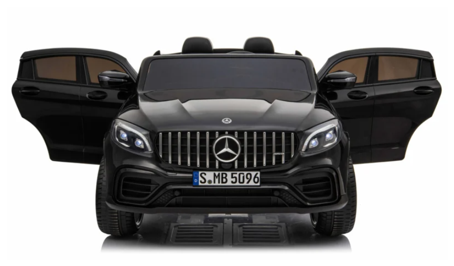 This Mercedes GLC 2-person children’s car is also the FULL options version. This electric children’s car is equipped with all options that are available, including opening doors, leather-look seat, belt, soft start, rubber tires (EVA) and suspension all around. The Mercedes also has 4 engines instead of 2 engines. The speed of this beautiful children’s car is adjustable from 3 to 6 km per hour. Thanks to the ‘Soft Start’ function, the speed is gradually built up. Children do not feel any shock when driving away. The Mercedes is equipped with full rubber tires, suspension wheels, leather seat and the car has 2 belts, 1 for each child. Furthermore, this battery vehicle for children has a horn and music buttons on the steering wheel and a music module with USB, mini SD and MP3 input to play your own music.